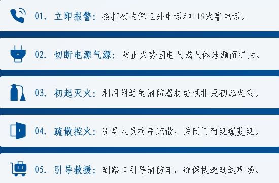 处置原则:先控制、后扑灭;救人先于救火;先重点、后一般;无法控制立即撤离。